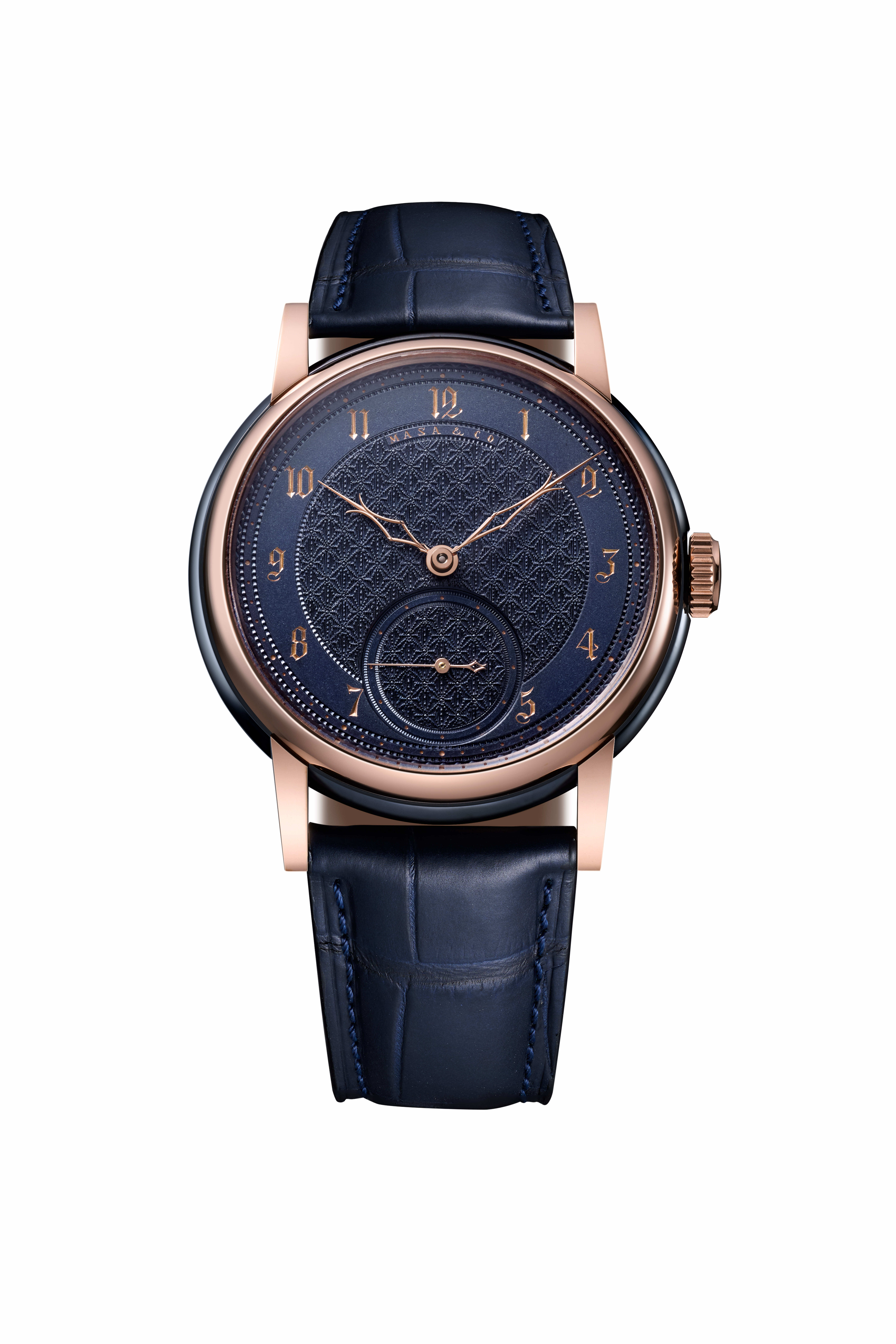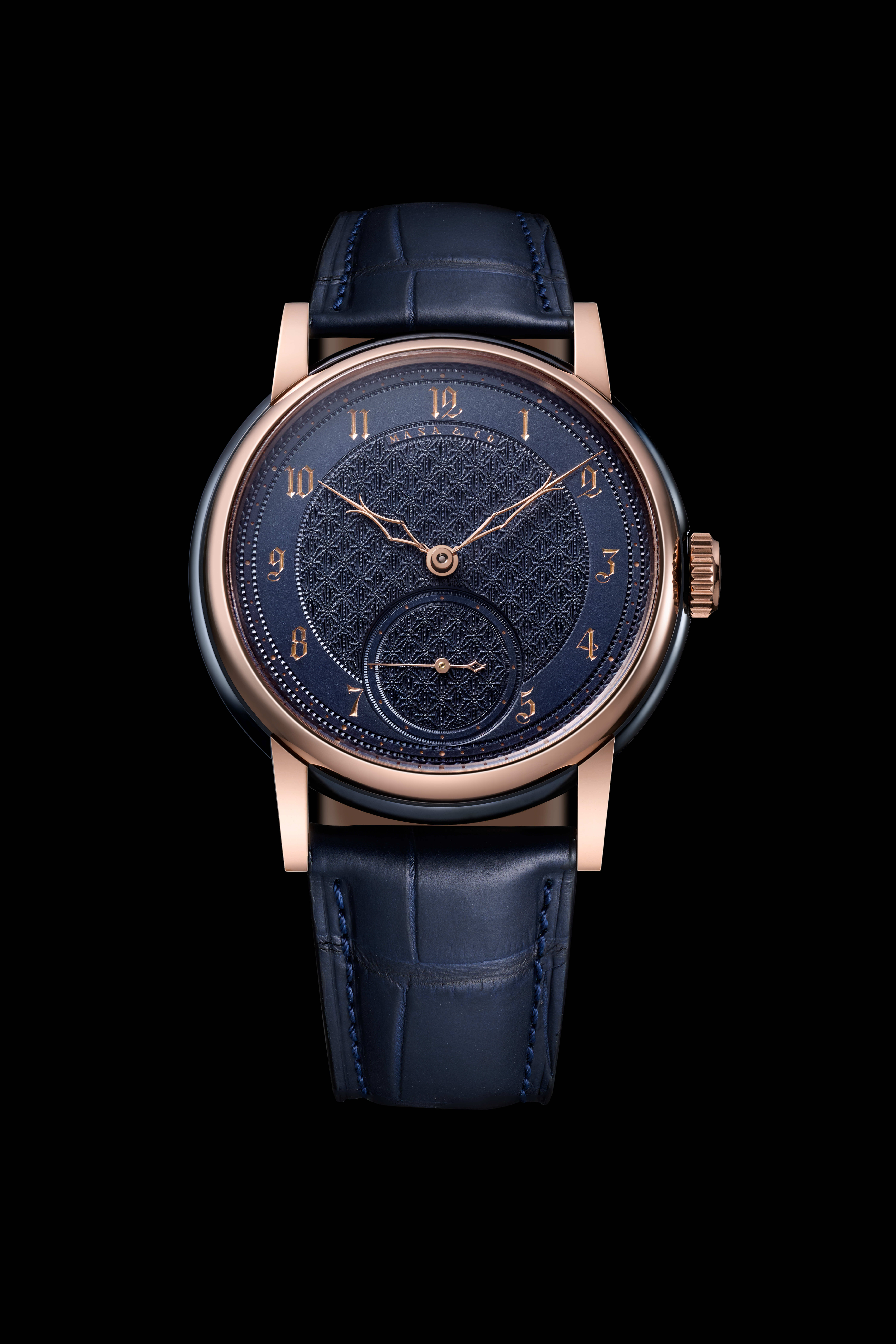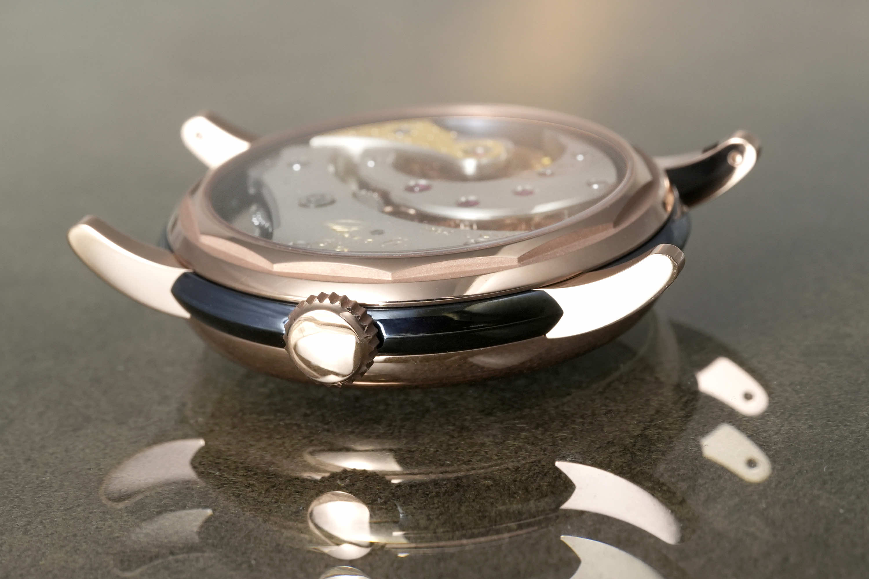 独自に仕上げられた自社製キャリバーMP1、専用設計のケースとの組み合わせにより「蒼黒」が完成した。