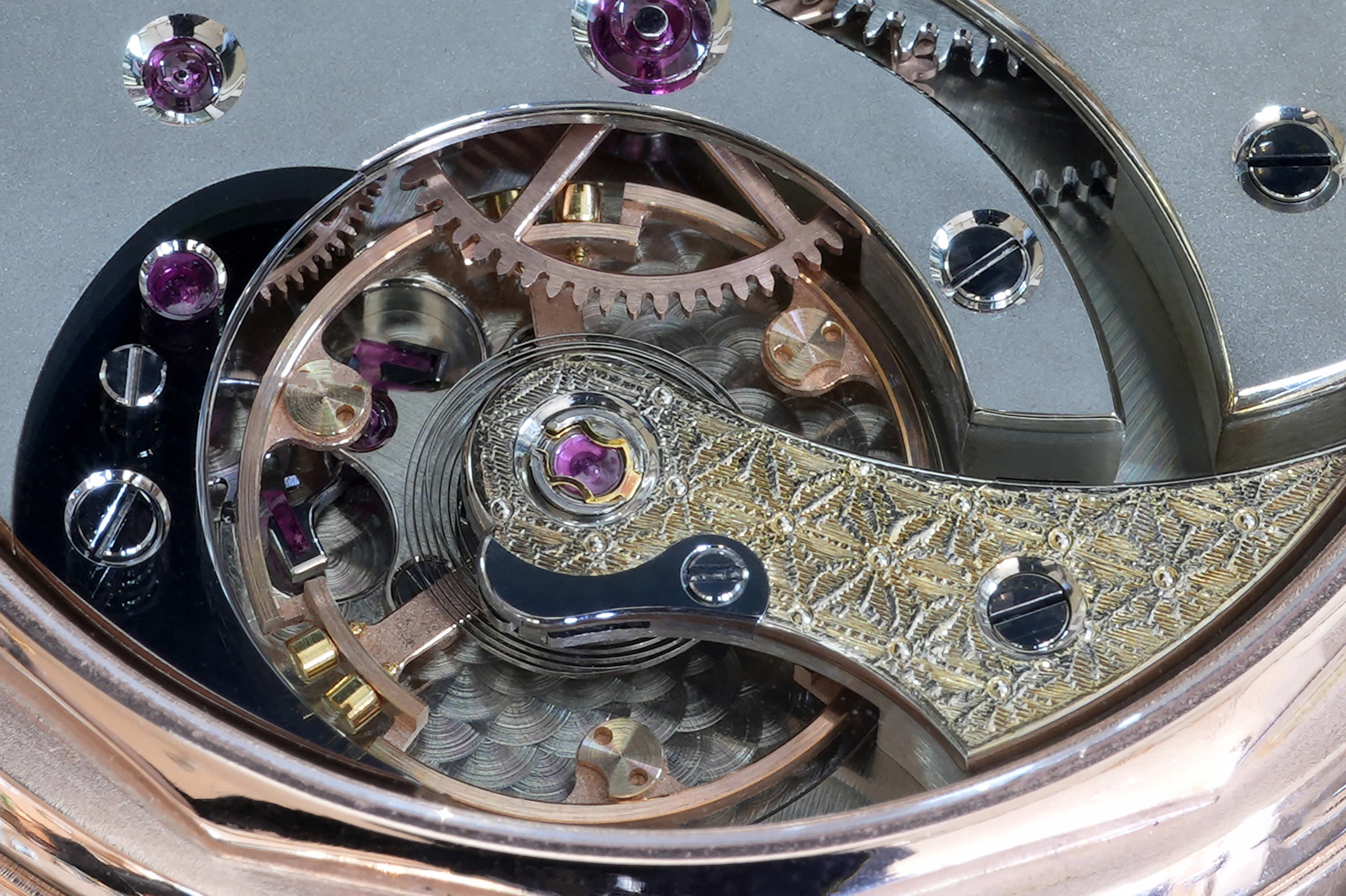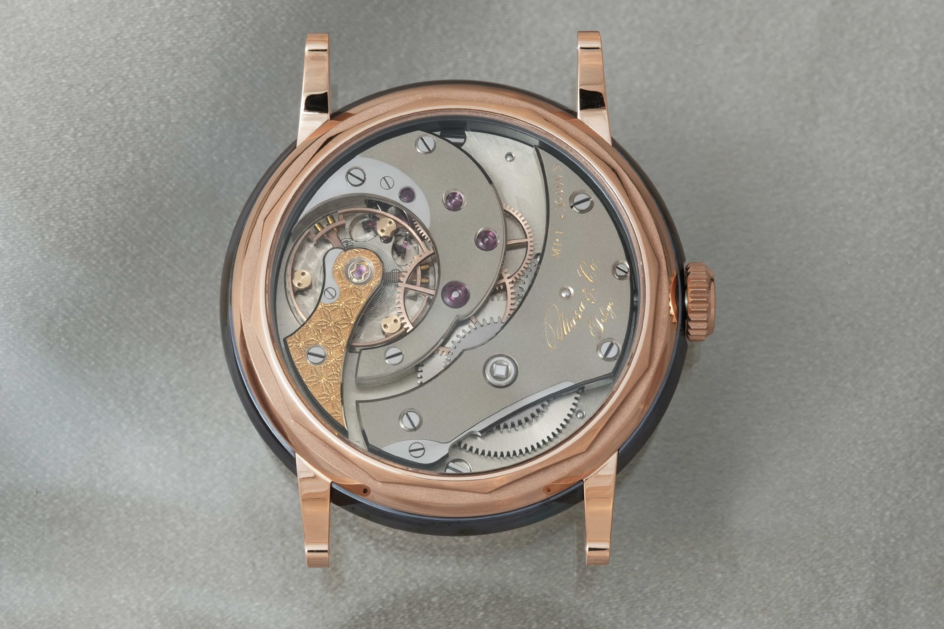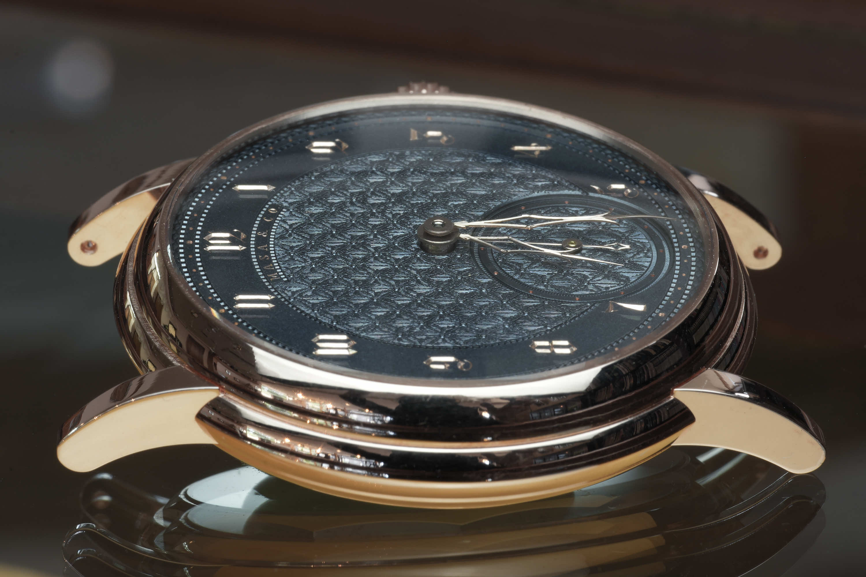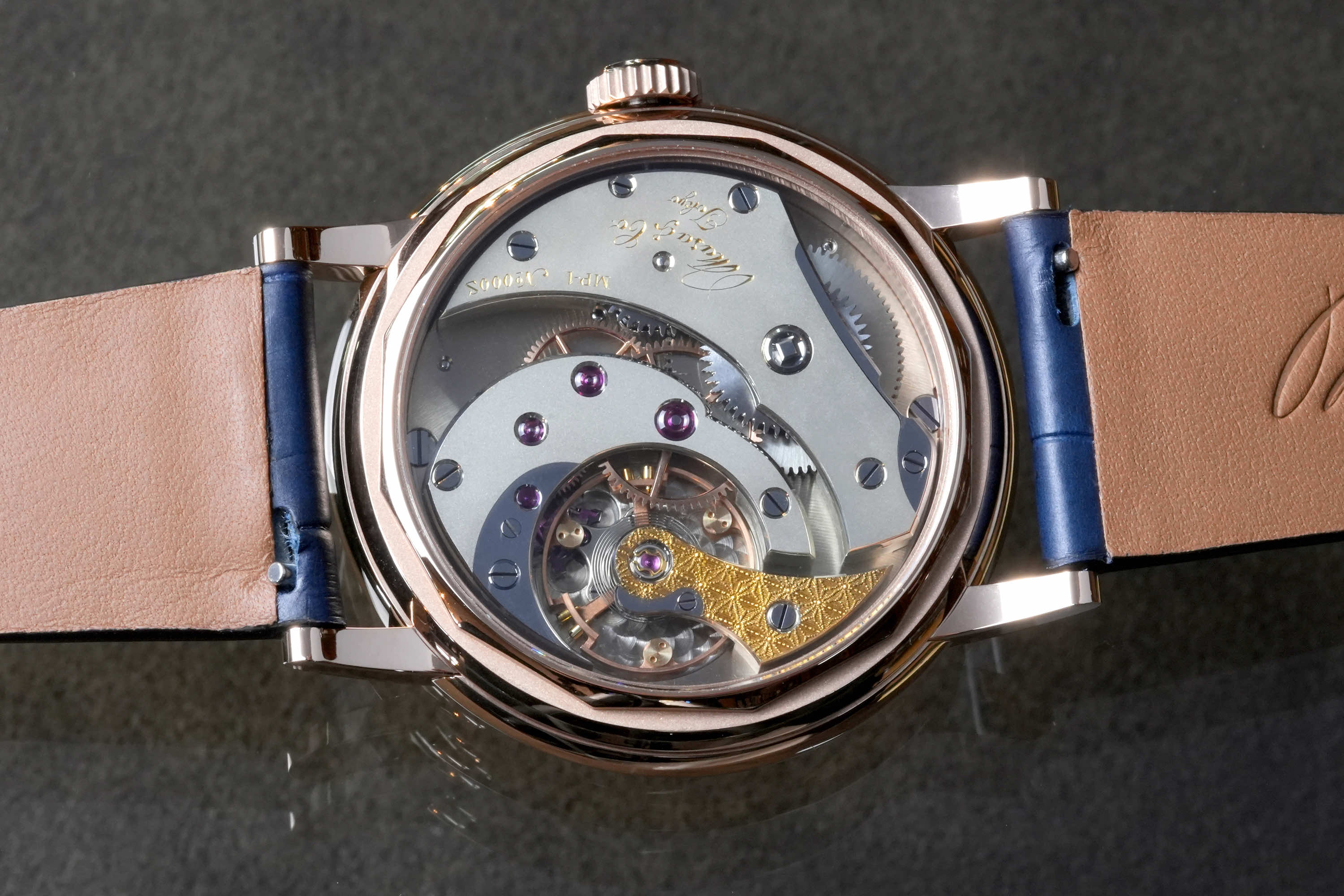 独自に仕上げられた自社製キャリバーMP1、専用設計のケースとの組み合わせにより「蒼黒」が完成した。